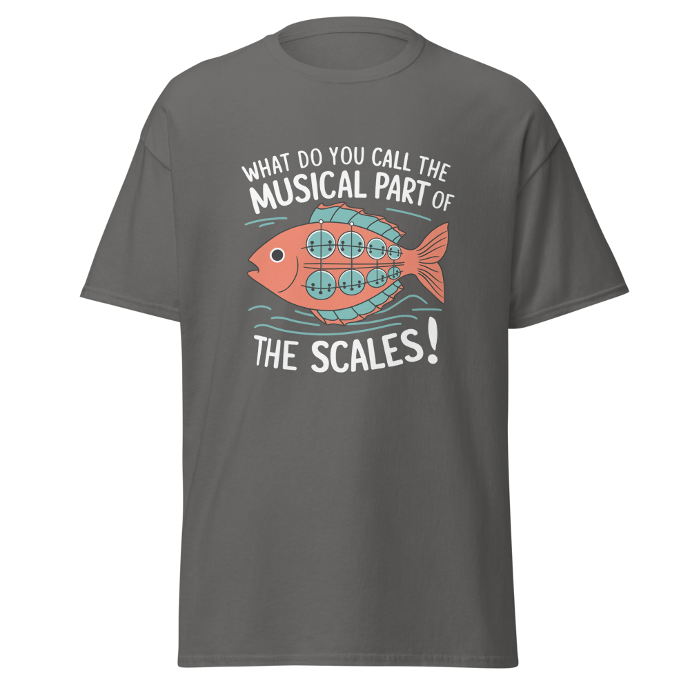 A whimsical fish with musical scales strums a banjo while waves ripple around. Perfect for music lovers and teens with a quirky sense of humor.