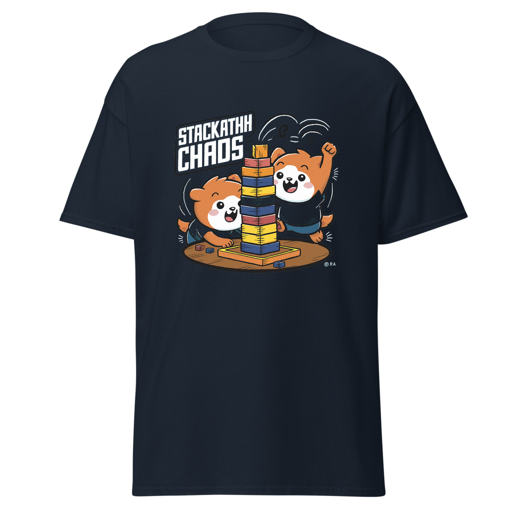 This fun and playful tee features adorable characters in the midst of an exciting block stacking battle, with cheers and smiles all around. Perfect for kids who love a bit of friendly competition and old-school toys!
