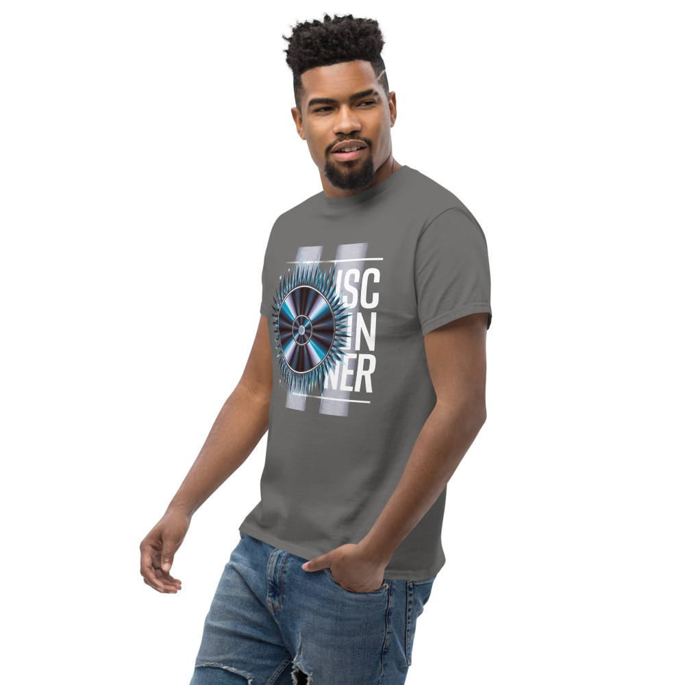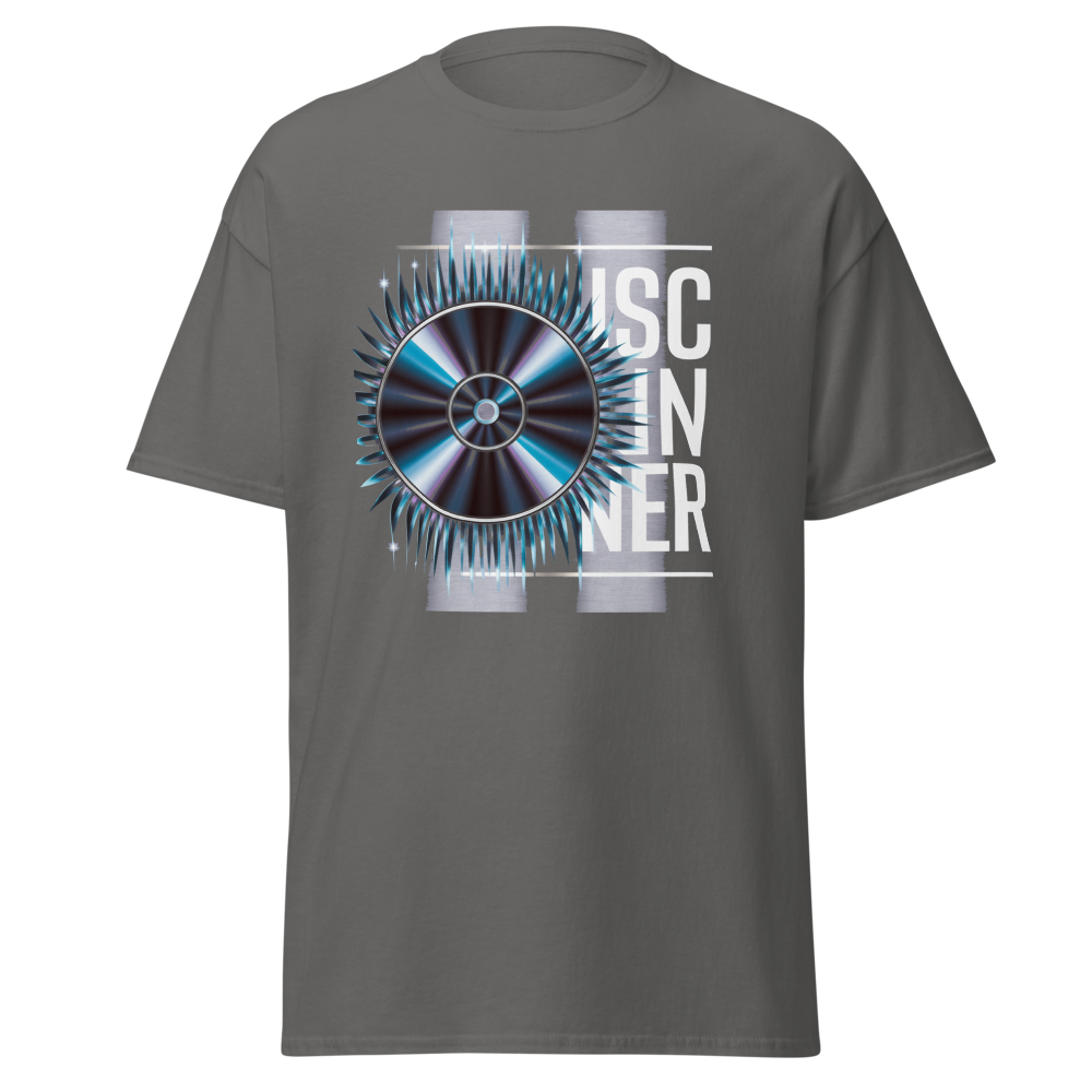 This t-shirt features a retro-inspired spinning CD design with shimmering reflections and sound lines radiating outward. Perfect for teens and anyone who loves vintage vibes.