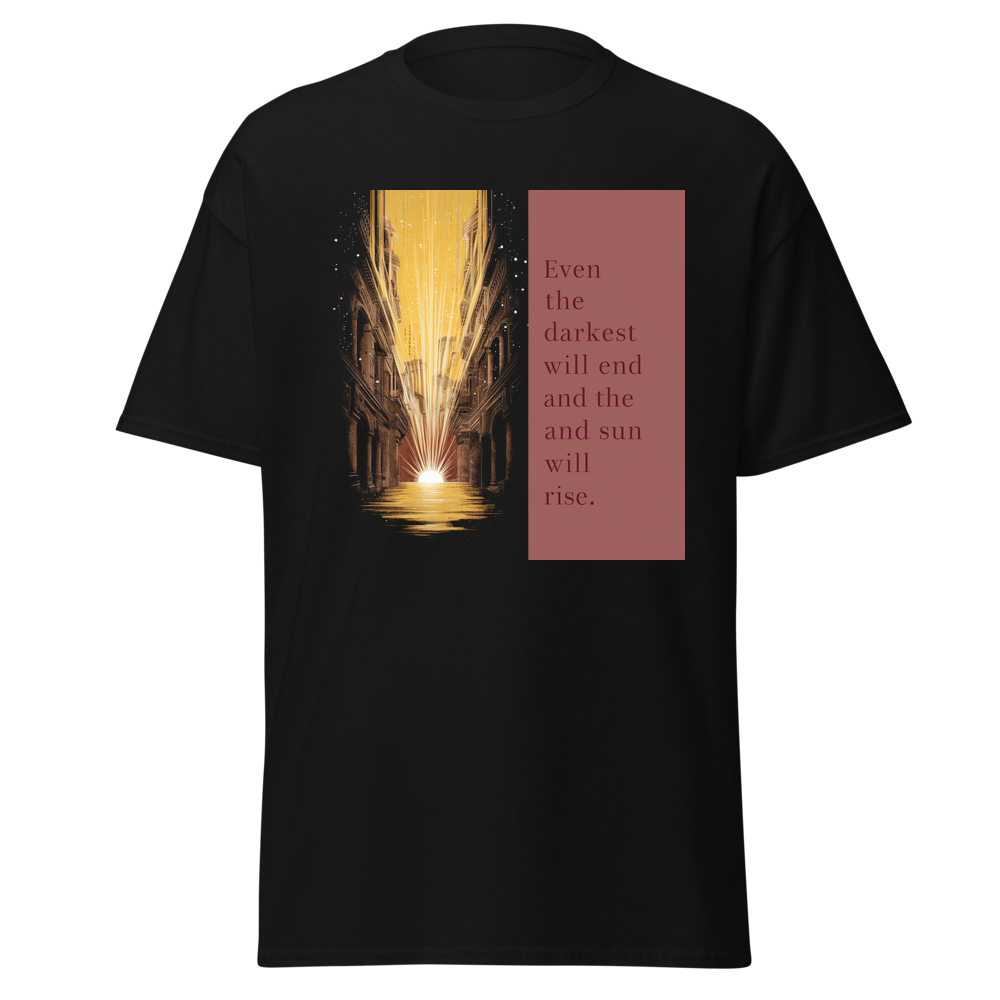 An intricate sunrise over an antique cityscape with radiant, swirling beams of light illuminating scattered, small stars. Perfect for those who seek beauty and inspiration in everyday moments.