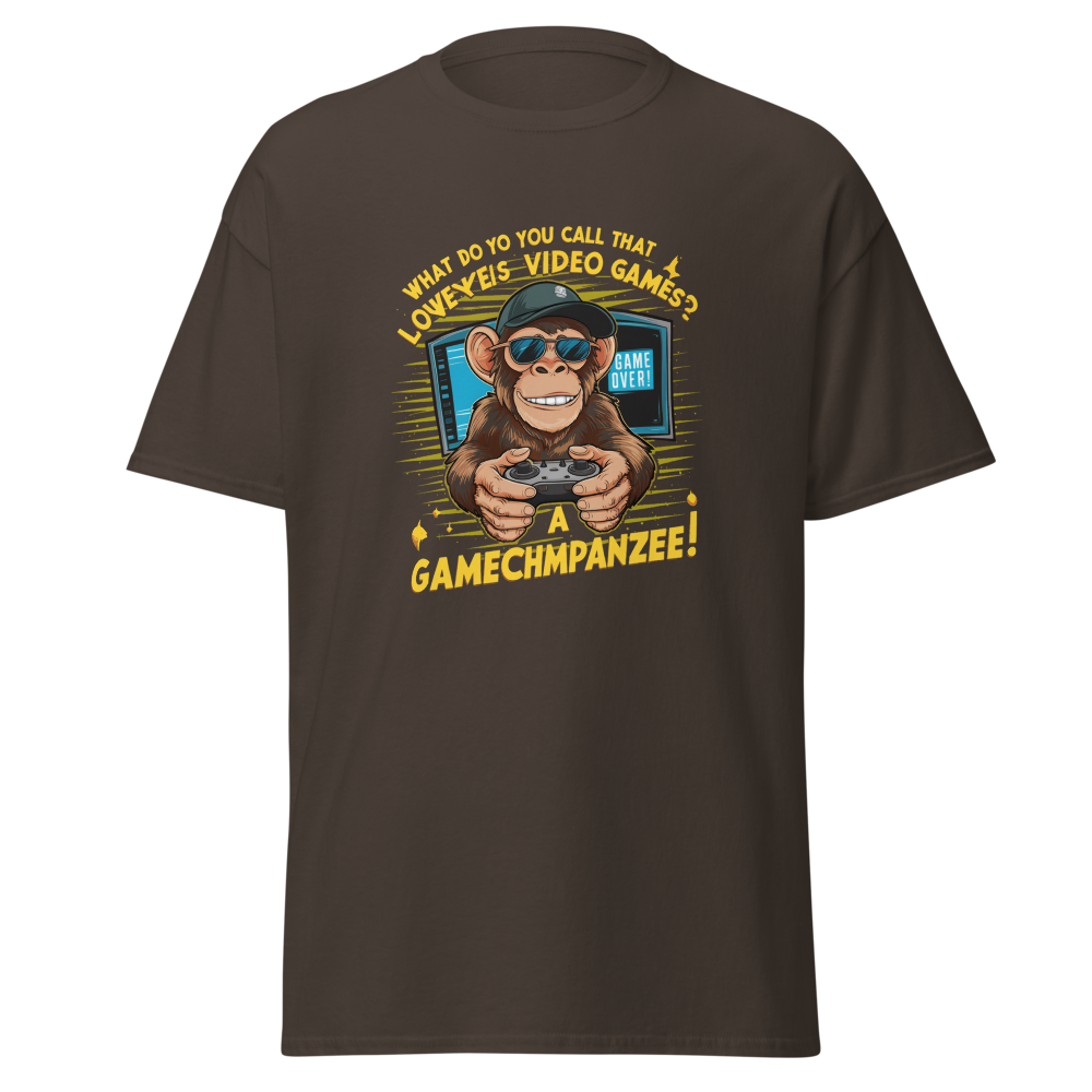 This fun and playful tee features a cartoon monkey holding a game controller with a "Game Over" screen. Perfect for gamers and tech enthusiasts, this shirt brings a smile to anyone who loves video games. Ideal for teens and anyone with a sense of humor.
