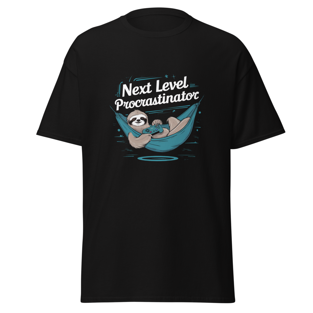 This fun tee features a chilled-out sloth lounging in a hammock with a game controller in hand. Perfect for gamers and anyone who loves to take it easy.