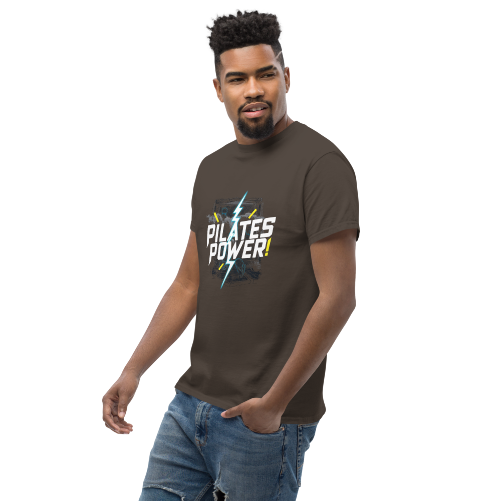 Unleash your inner strength with our dynamic Pilates Power t-shirt. Featuring a vintage-inspired lightning bolt and thundercloud with classic gym gear illustrations, this design is perfect for Pilates enthusiasts looking to make a powerful statement.