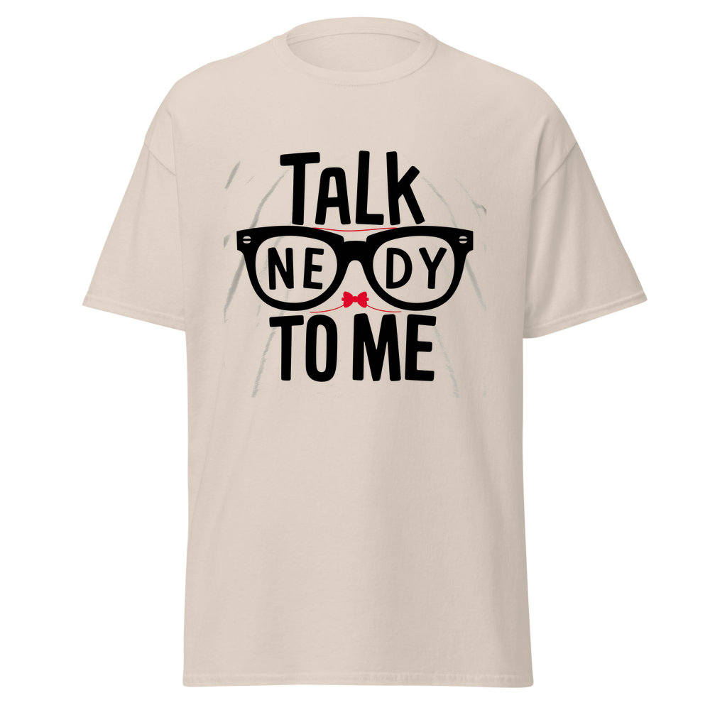 This quirky design features thick-framed glasses and a classic bow tie, perfect for anyone who loves a fun pop culture twist. Ideal for young adults and meme enthusiasts, this shirt adds a playful touch to any outfit!