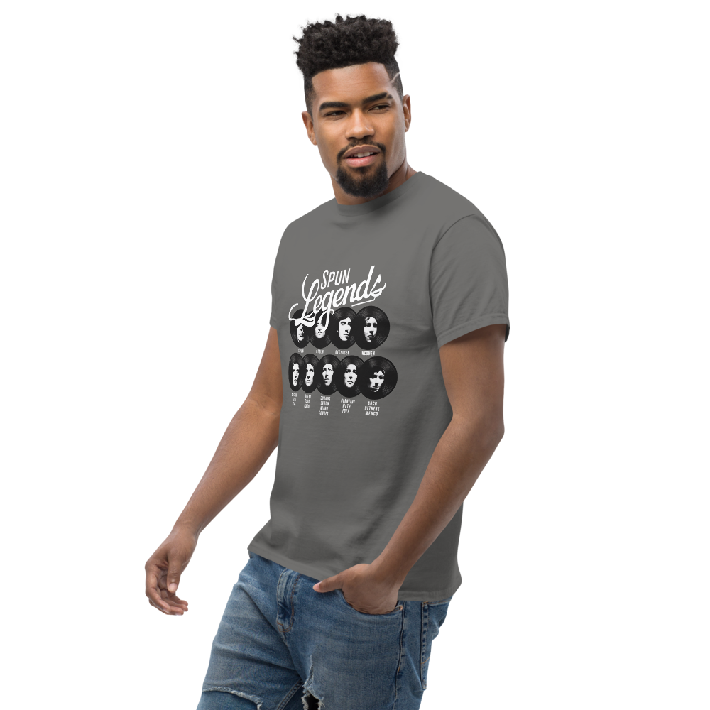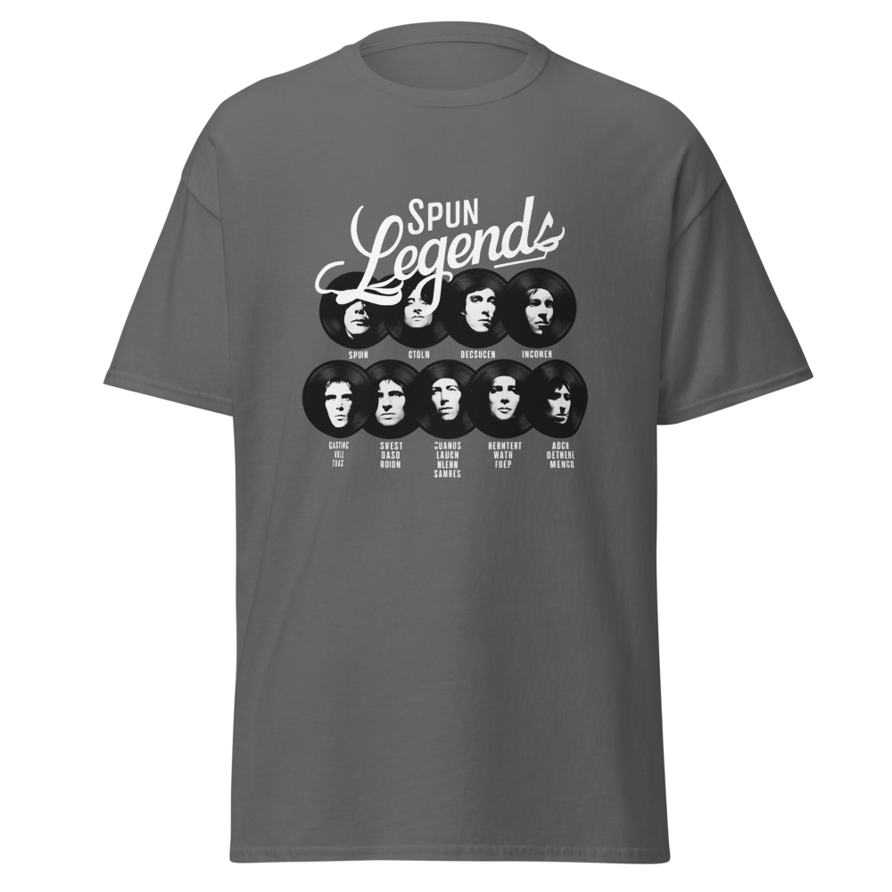 Dive into nostalgia with our "Spun Legends" shirt. Featuring stylized portraits of legendary rock stars overlaid on vinyl records, this shirt is perfect for music lovers. The artistic touch and bold design make it a standout piece for any collection. Ideal for adults who have a passion for vinyl records and classic rock.