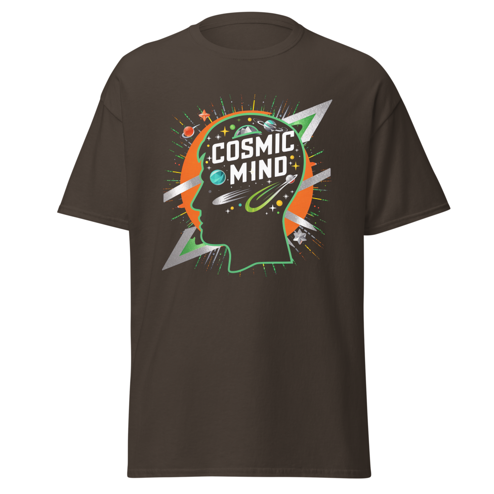 This eye-catching shirt features a pop art-inspired silhouette of a head filled with geometric space elements. Perfect for anyone who loves astronomy and unique designs.