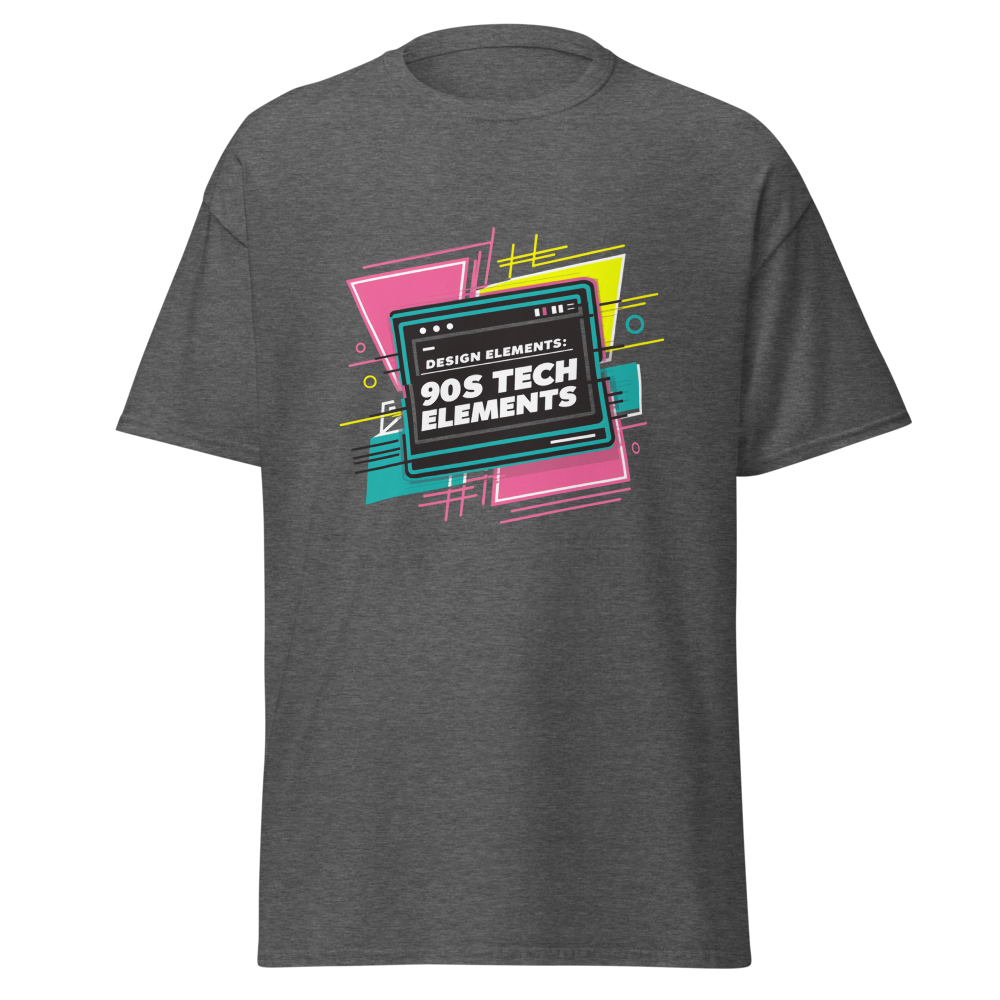 A nostalgic blend of 90s tech elements, including vintage computers, set against a vibrant, abstract geometric background. Perfect for adults and collectible enthusiasts who appreciate retro aesthetics and technology.