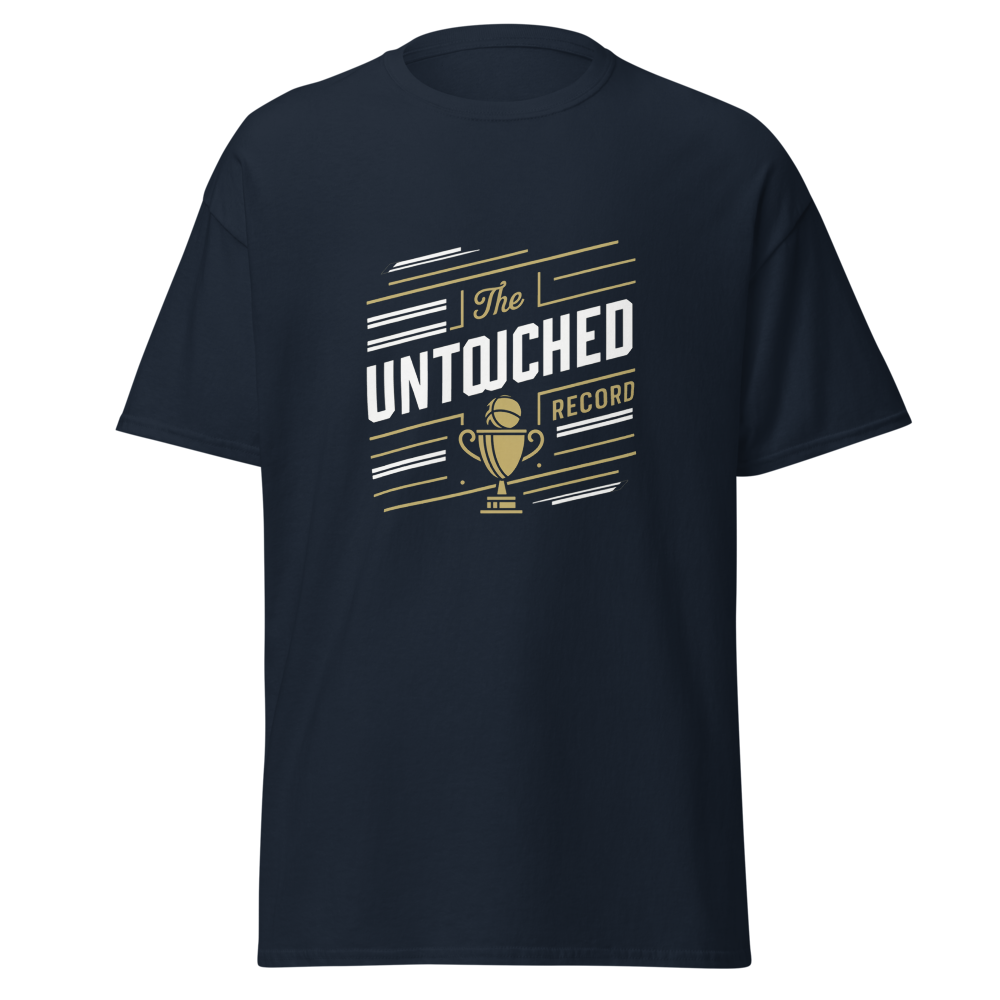 This shirt features a stylized vintage sports record book with eye-catching geometric designs, perfect for those who love reminiscing about classic sports moments and history. Ideal for seniors and past sports team members.