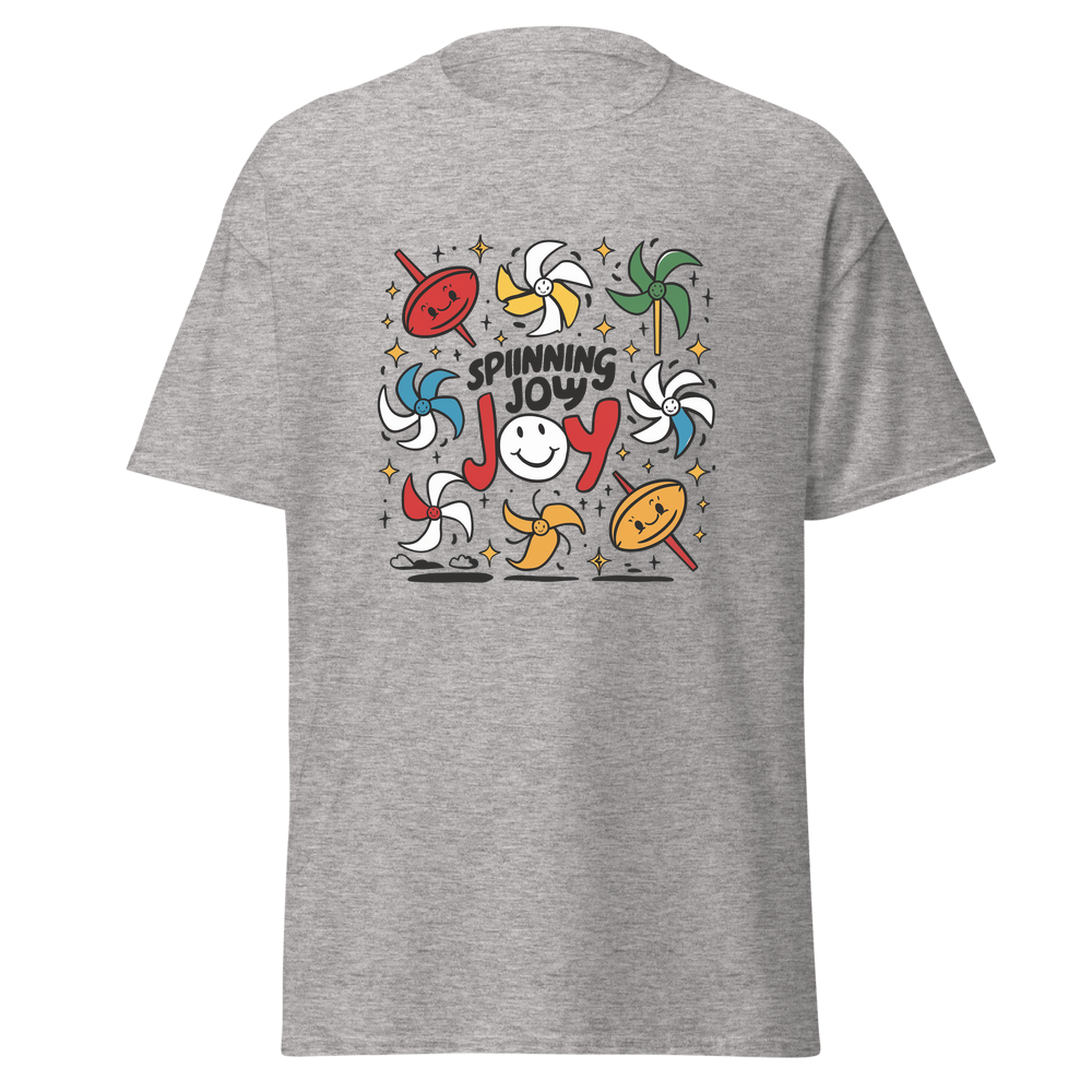 Bring back the playful charm of old toys with this delightful design featuring cartoon spinning tops and pinwheels with smiling faces, surrounded by stars and sparkles. A perfect pick for kids and those young at heart.